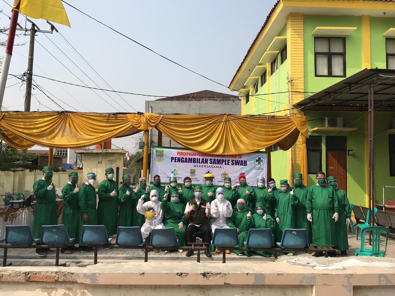 penanganan agresif ini di antaranya dengan melakukan percepatan penanggulangan covid-19 salah satunya adalah kegiatan pengambilan sample tes swab secara masif kepada kontak erat dari orang yang terkonfirmasi positif covid-19 seperti yang di lakukan di Puskesmas mekarmukti tepatnya di jalan lemah abang desa mekarmukti, kecamatan cikarang utara, kabupaten bekasi, jawa barat yang bekerjasana dengan kantor kecamatan cikarang utara, polsek cikarang utara, dan koramil cikarang utara bertempat di halaman puskesmas mekarmukti pada hari rabu tanggal (02/09/2020).