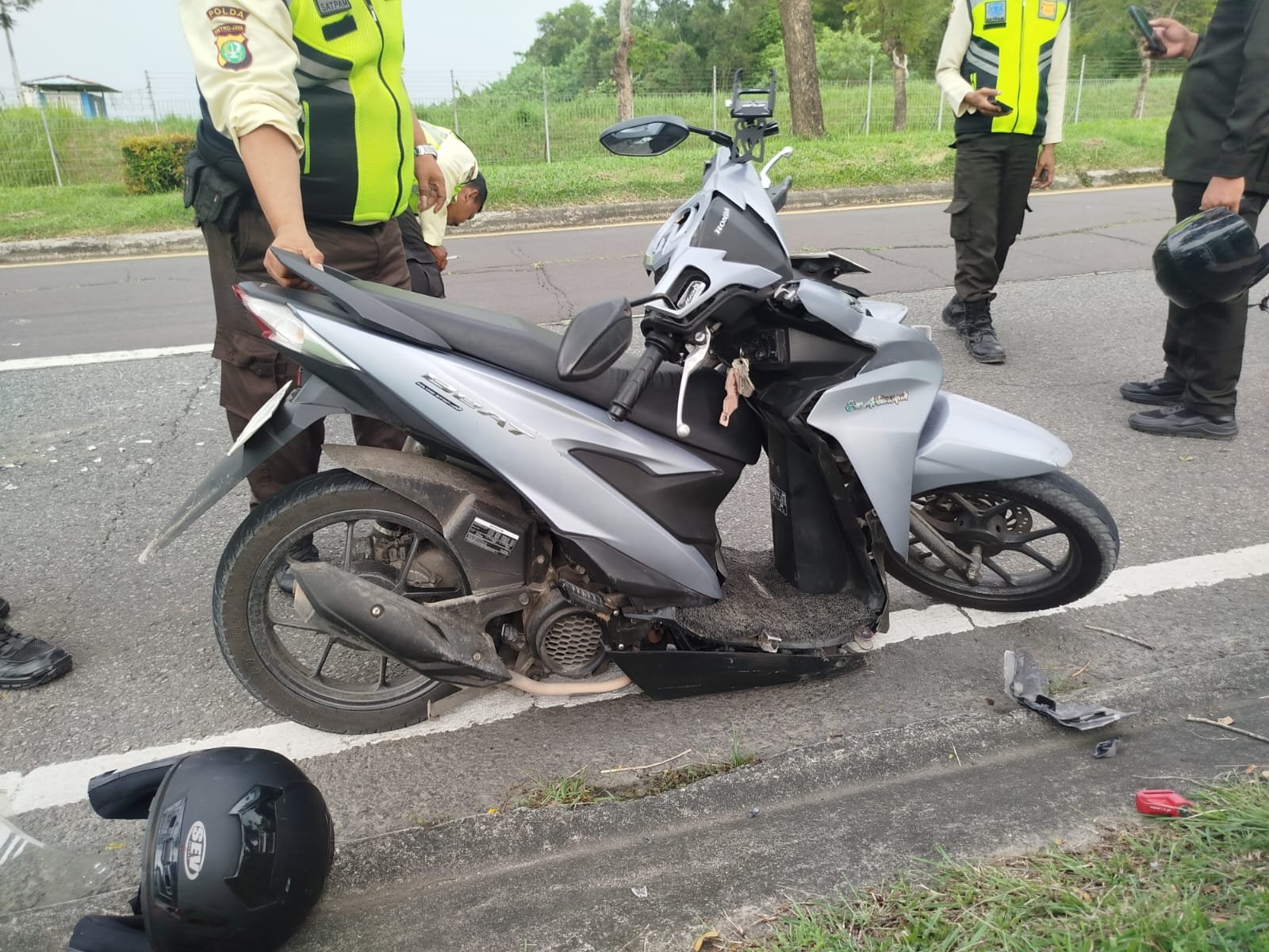NASIONALXPOS.CO.ID, BEKASI – Kecelakaan lalu lintas terjadi di kawasan industri Deltamas, Kabupaten Bekasi, Jawa Barat, Sabtu (28/3/2026). Seorang pengendara sepeda motor berinisial DK mengalami luka serius setelah menabrak mobil boks yang terparkir di depan pabrik.