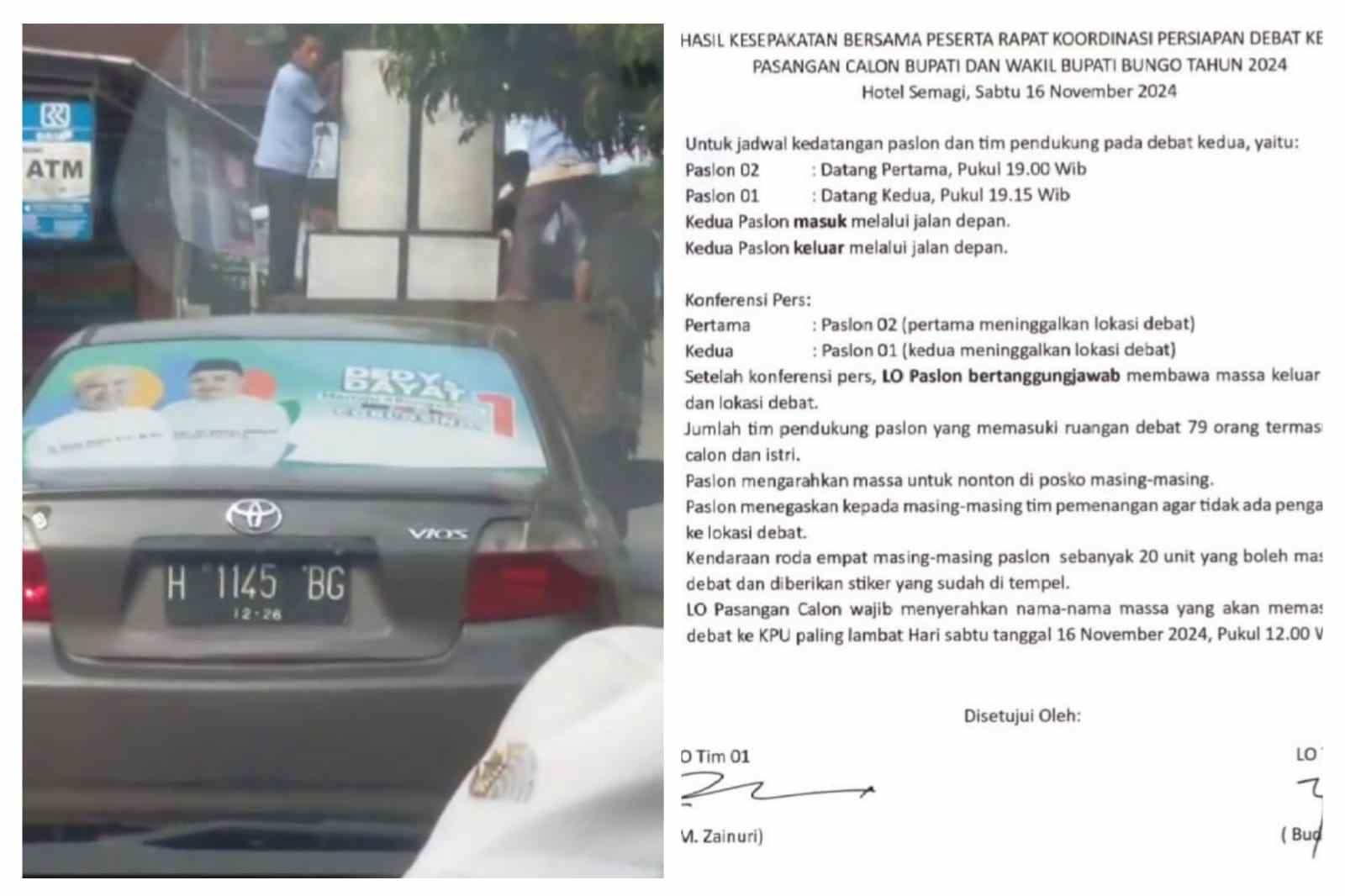 Sementara itu dari video yang beredar luas di media sosial, tim 1 dengan mobil bak terbuka yang diisi oleh sound system berkeliling kampung untuk menghimbau dan mengajak warga untuk menghadiri acara debat kandidat kedua di Hotel Semagi.