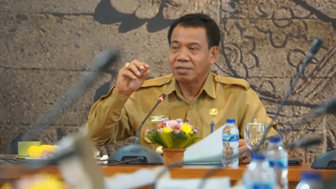 PJ Bupati Buleleng, Ketut Lihadnyana, dalam rapat di rumah jabatan Bupati bersama Forkopimda Buleleng, membahas sengketa lahan HPL 01 Tahun 1976, Desa Pejarakan, Kecamatan Gerokgak, Buleleng, Bali.