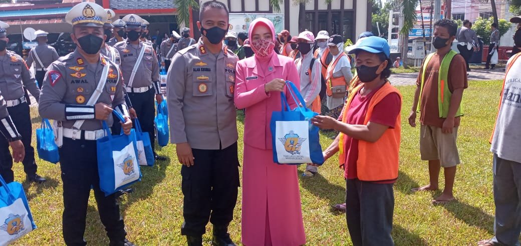 Diketahui, Polres Bitung telah menyiapkan 100 paket sembako dan 20 Helm yang dibagikan kepada 50 orang penyapu jalan dan 40 pengendara ojek. Usai pelaksanaan upacara dilakuka pemotongan Tumpeng  dalam rangka HUT ke – 67 Lalu Lintas Bhayangkara oleh  Kapolres Bitung yang didampingi Ketua Bhayangkari Cabang Bitung dan diserahkan kepada anggota Sat Lantas yang tertua dan termuda, kemudian dilanjutkan dengan ramah tamah.