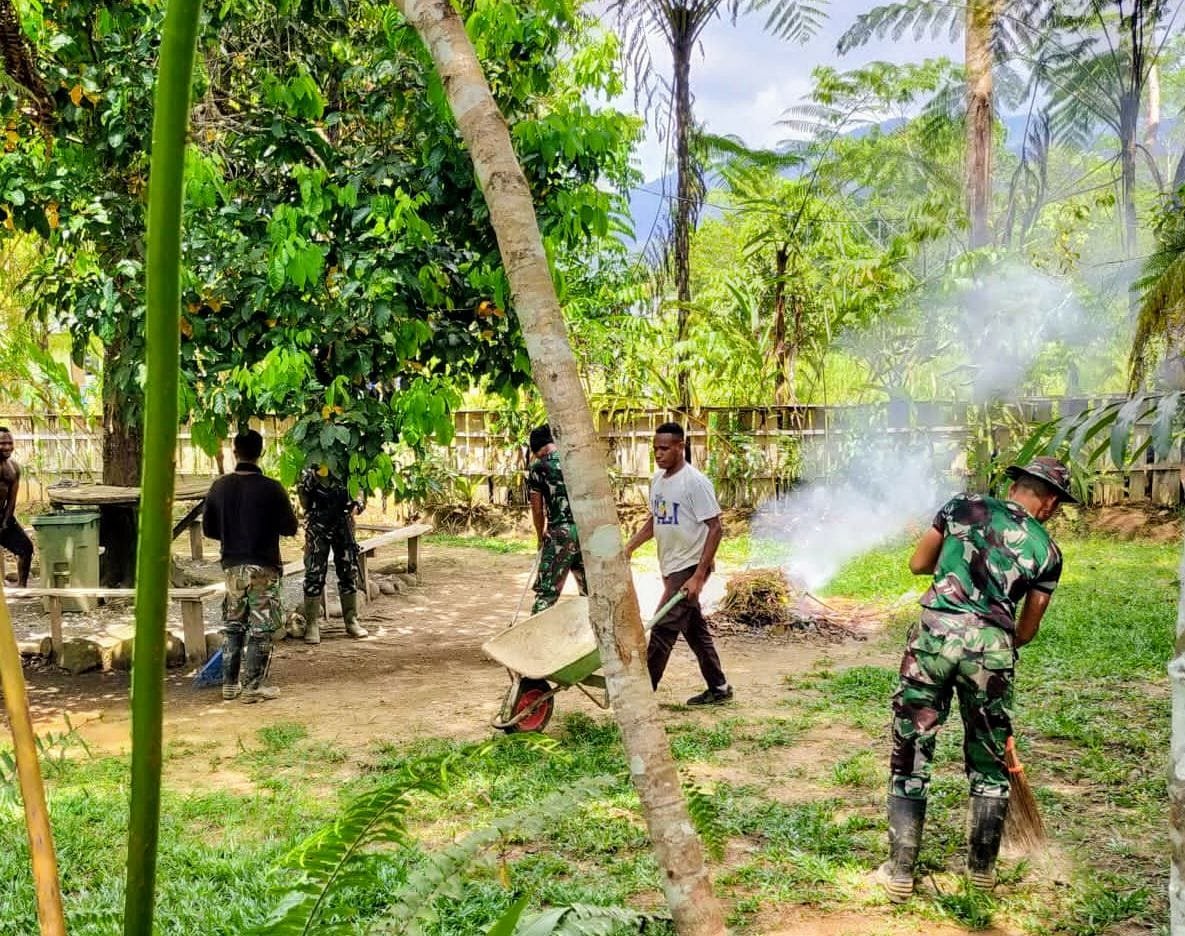 NASIONALXPOS.CO.ID, PAPUA – Satgas Yonif Raider 142/Ksatria Jaya melalui Pos Kotis Elelim melaksanakan Karya Bhakti membersihkan Gereja St. Fransiskus Xaverius Elelim, di Distrik Elelim Kabupaten Yalimo, Provinsi Papua Pegunungan, Rabu (25/01/23).