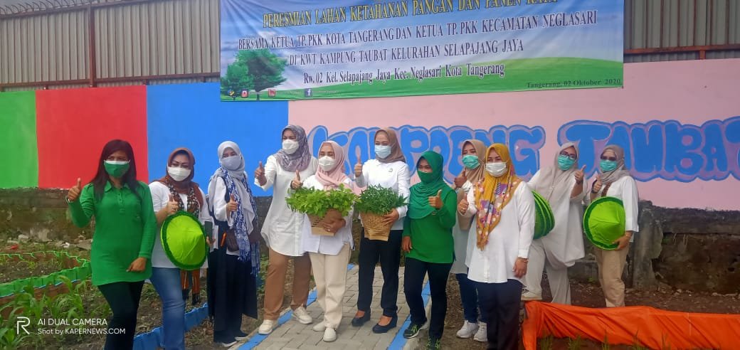 NASIONALXPOS.CO.ID, TANGERANG – Peresmian Lahan Ketahan pangan oleh ibu Leli Gunung Iskandar di dampingi ibu wali kota Tangerang di kampung Tobat, Kelurahan Selapajang Jaya Kecamatan Neglasari, Tangerang Kota .Jumat 02/10/2020.