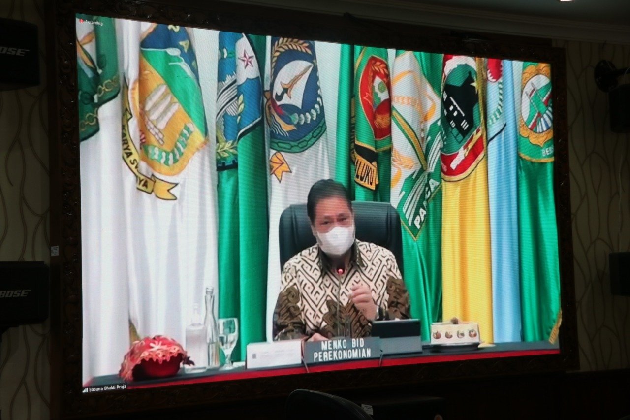 “Percepatan perizinan berusaha merupakan bagian dari transformasi ekonomi dalam upaya percepatan pemulihan ekonomi nasional akibat pandemi covid-19,” terang Airlanga, yang selanjutnya dilakukan penyampaian arahan secara teknis oleh Menteri Investasi Bahlil Lahadalia, dan Menteri Dalam Negeri Tito Karnavian.