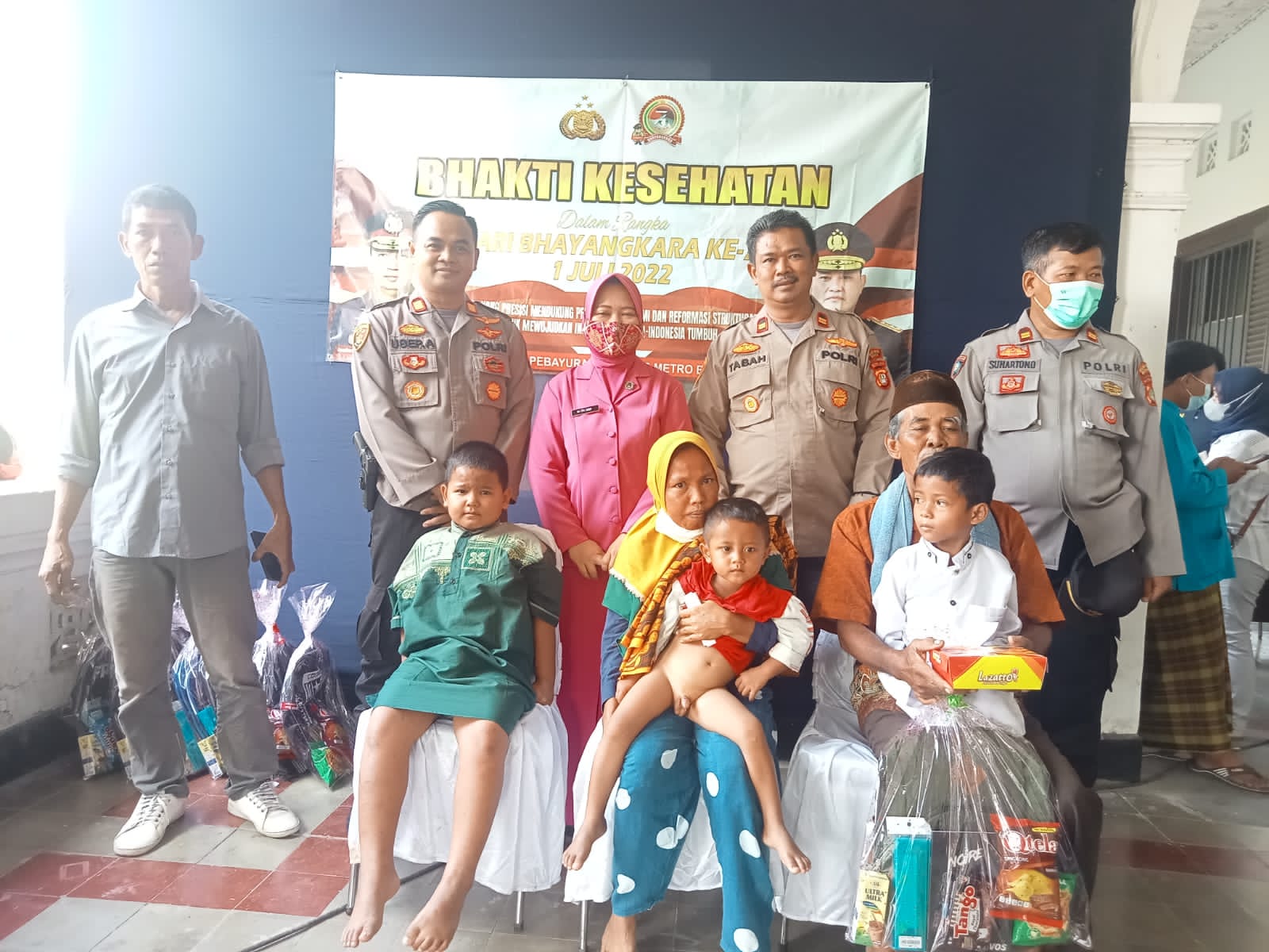 NASIONALXPOS.CO.ID, BEKASI – Dalam rangka memperingati hari Bhayangkara ke 76, Polsek Pebayuran Polres Metro Bekasi menyelenggarakan sunatan massal. Kegiatan yang di selenggarakan di Gedung Aula Polsek Pebayuran Jln Raya Pebayuran Kelurahan Kertasari, Kecamatan Pebayuran, Kabupaten Bekasi, di ikuti kurang lebih 18 orang anak dari berbagai desa yang ada di kecamatan Pebayuran, Kamis (30/06/22).