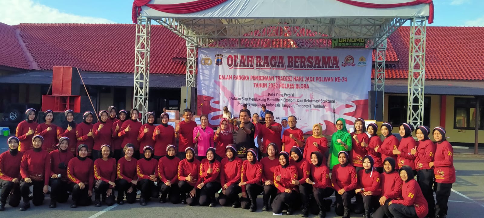 NASIONALXPOS.CO.ID, BLORA – Dalam Rangka Pembinaan Tradisi Hari Jadi Polwan Ke 74 Tahun 2022, Polres Blora menggelar kegiatan olahraga bersama, dihalaman belakang Mapolres Blora, Jl. Nasional Blora-Cepu, Jumat, (19/08/2022).