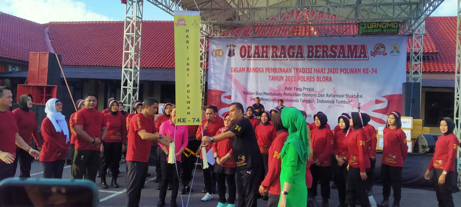 Kegiatan diawali dengan Olahraga Senam Bersama kemudian dilanjutkan doa dan Yell Yell Polwan yang dirangkaikan dengan seremonial peringatan Hari Jadi Polwan Ke 74. Yaitu pemotongan pita balon oleh Forkopimda Blora dimana balon tersebut akan terbang ke atas langit dan jika nanti turun ke bumi maka yang menemukan akan beruntung karena pada balon tersebut ada hadiahnya.