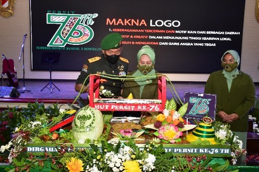 Acara puncak peringatan HUT Ke-76 Persit KCK kali ini, ditandai dengan pemotongan tumpeng yang dilakukan oleh Ketua Persit KCK PD II Sriwijaya Ny. Shinta Agus Suhardi didampingi Pangdam II/Swj Mayjen TNI Agus Suhardi, selanjutnya diberikan kepada salah satu Pengurus berprestasi atas nama Ny. Deli Anggreani, Istri dari Praka De Ridwan Efendi, anggota Kikav 5/GCC.