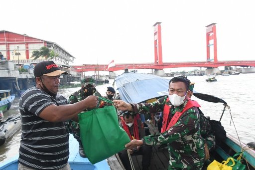 Lanjut Kapendam, untuk kegiatan Baksos pembagian sembako di lokasi pertama, dilaksanakan di Pasar 16 Ilir sebanyak 300 paket sembako yang dipimpin langsung oleh Pangdam II/Sriwijaya Mayjen TNI Agus Suhardi dan Kapolda Sumsel Irjen Pol Drs Toni Harmanto dengan sasaran masyarakat yang tinggal dipinggiran Sungai Musi serta masyarakat yang berada di atas perahu/rakit.