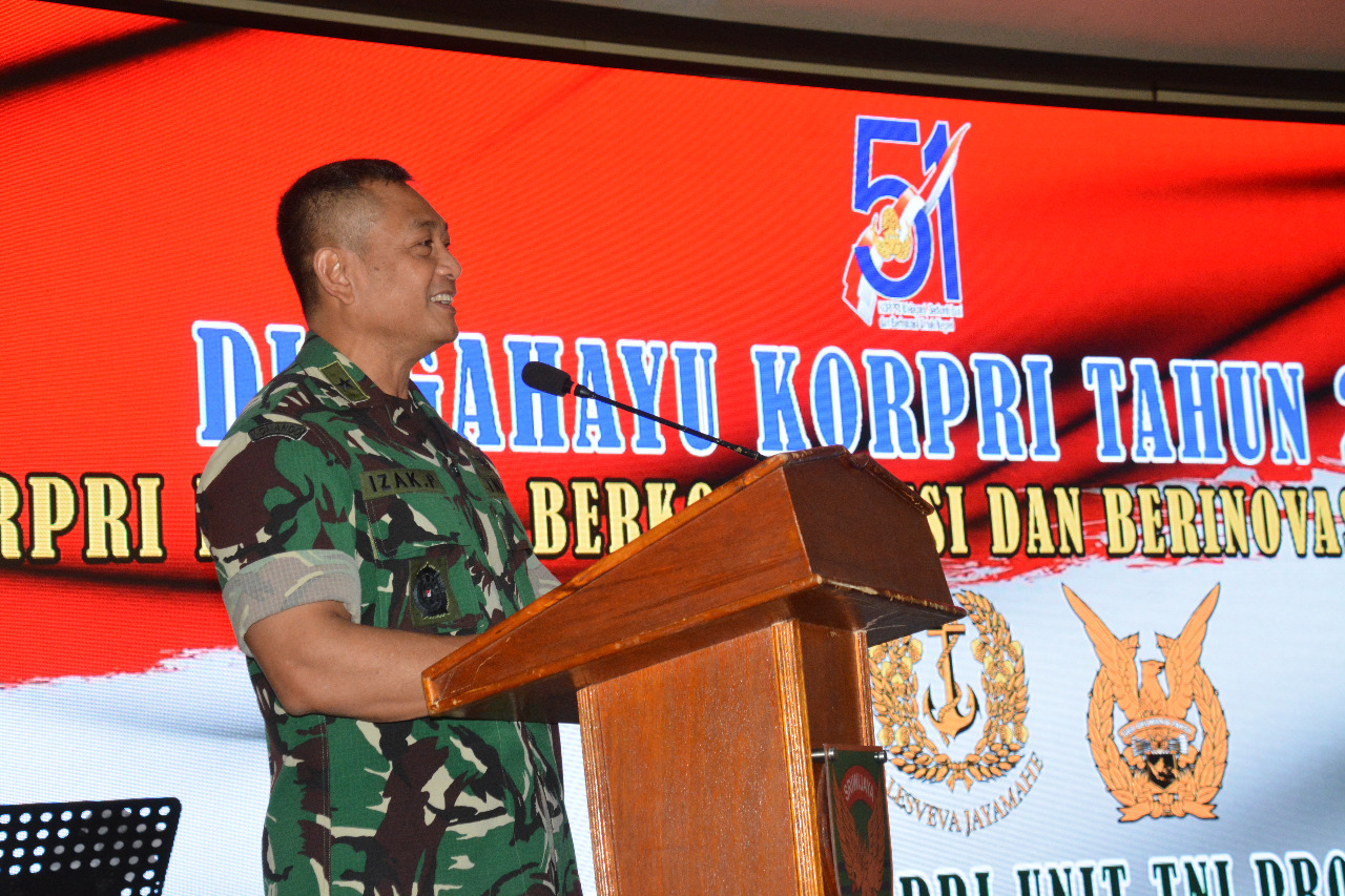 Dalam menghadapi tantangan tugas yang semakin berat dan kompleks, menuntut anggota Korpri untuk memberdayakan dirinya secara lebih optimal, senantiasa bekerja keras dan cerdas guna mensukseskan tugas dan fungsinya di lingkungan TNI.