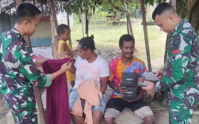 Seperti halnya dilakukan oleh Pos Yabanda Satgas Yonif 143/TWEJ yang pada kesempatan ini mendatangi warga untuk berbincang eratkan komunikasi dan membagikan bantuan pakaian sebagai wujud cinta kasih dan kemanunggalan dengan masyarakat di Kampung Yabanda, Distrik Yaffi, Kabupaten Keerom Papua, Selasa (4/7/2023).