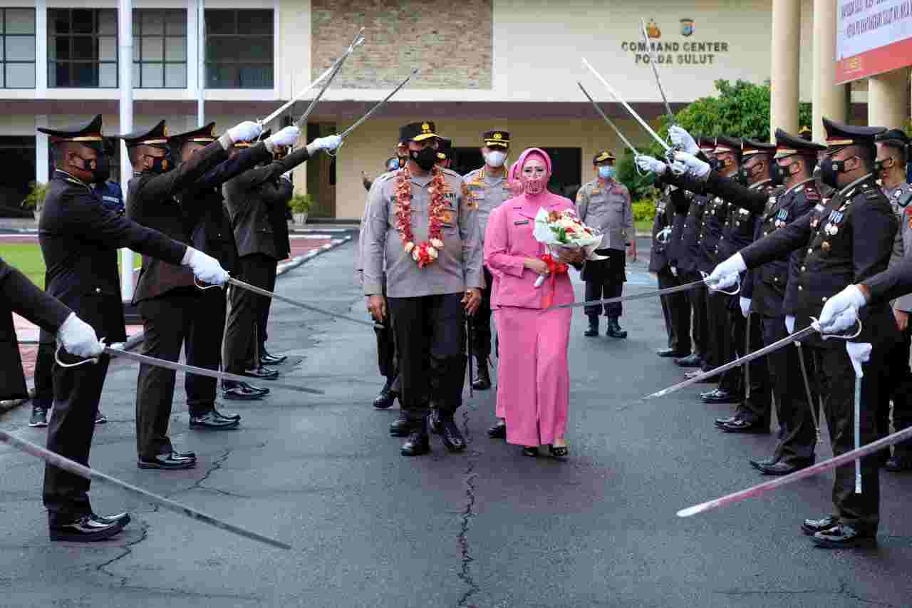 Diawali dengan pengalungan bunga dan pemberian buket bunga oleh sepasang Polisi Cilik dan Bhayangkari Cilik kepada Irjen Pol Nana Sudjana dan Ny. Shinta Nana Sudjana, di lobi utama Mapolda Sulut.