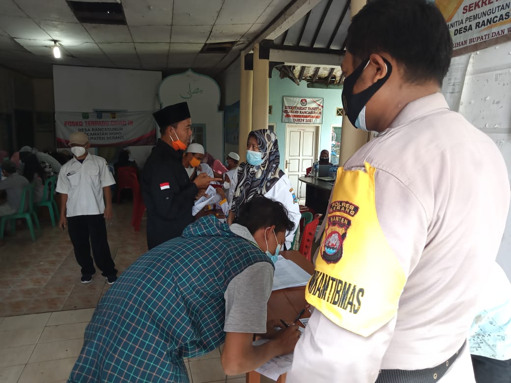Personel Polsek Polres Serang Melaksanakan Pengamanan Pelaksanaan Vaksinasi di Kecamatan Jawilan