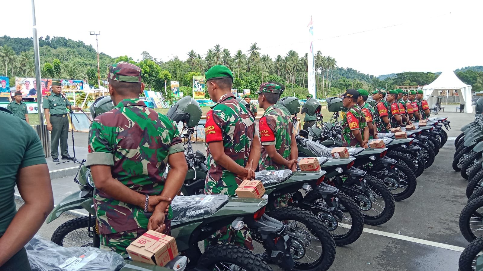 Personil Kodim 1512/Weda Terima 40 Unit Sepeda Motor Bantuan Menhan RI