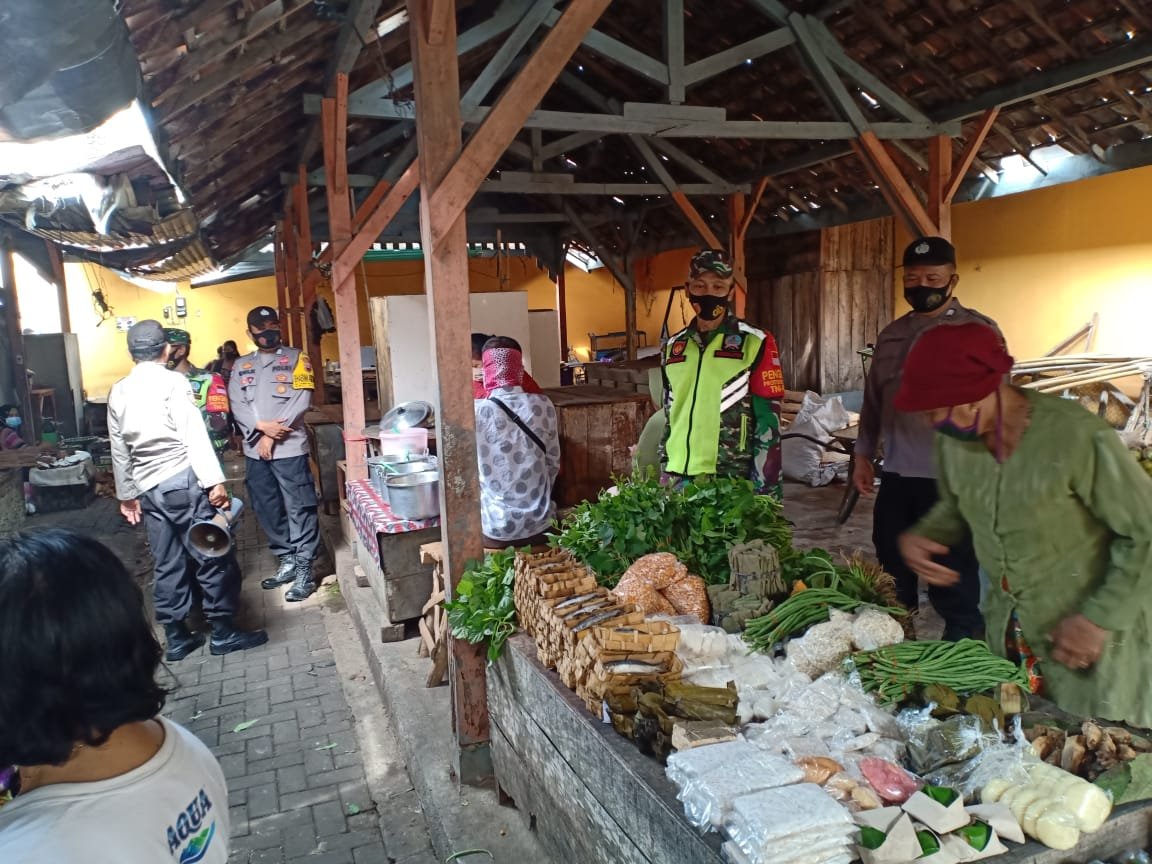 Anggota gabungan yang dipimpin oleh Wakapolsek Blora Iptu Ashari Yuwono melaksanakan patroli bersama, dengan sasaran pusat keramaian masyarakat, salah satunya adalah pasar tradisional dikawasan Jalan Rajawali Blora. Dengan menggunakan mega phone petugas gabungan tersebut blusukan pasar sembari menyerukan imbauan kamtibmas dan protokol kesehatan.