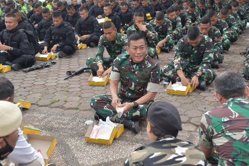 Usai memimpin Apel Gelar Pasukan, Pangdam II/Sriwijaya Mayjen TNI Agus Suhardi, mengajak para awak media makan siang bersama para pejabat Kodam II/Swj dan Prajurit TNI AD di Lapangan BKB Palembang.