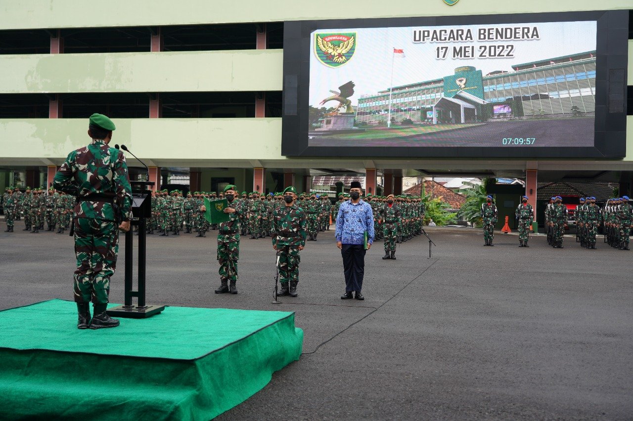 NASIONALXPOS.CO.ID, PALEMBANG – Pangdam II/Sriwijaya Mayjen TNI Agus Suhardi, memimpin upacara bendera bulanan atau 17-an yang diselenggarakan Kodam II/Swj, Selasa (17/5/2022) di lapangan Apel Makodam II/Swj Jalan Jenderal Sudirman KM 2,5 Palembang.
