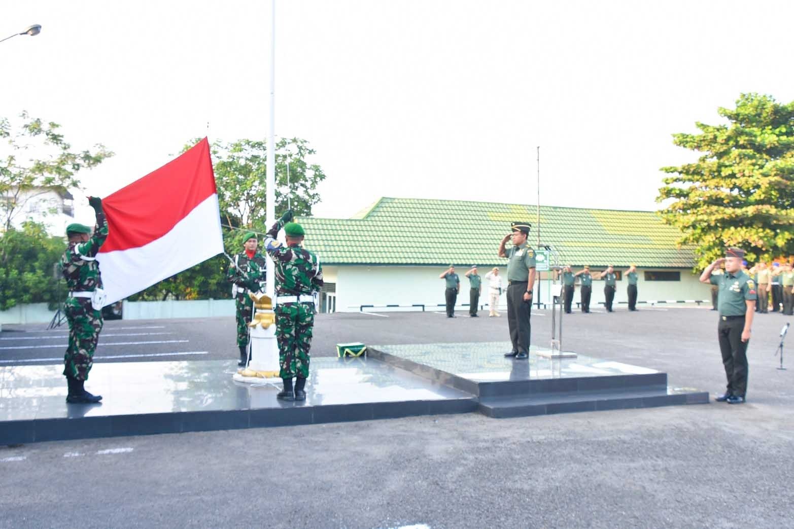 NASIONALXPOS.CO.ID, PALEMBANG – Prajurit dan ASN Korem 044/Gapo, melaksanakan upacara bendera bulanan, di lapangan Apel Makorem 044/Gapo yang dipimpin Kasi Personel Kasrem 044/Gapo Kolonel Inf Agus Faridianto, Rabu (17/5/2023).