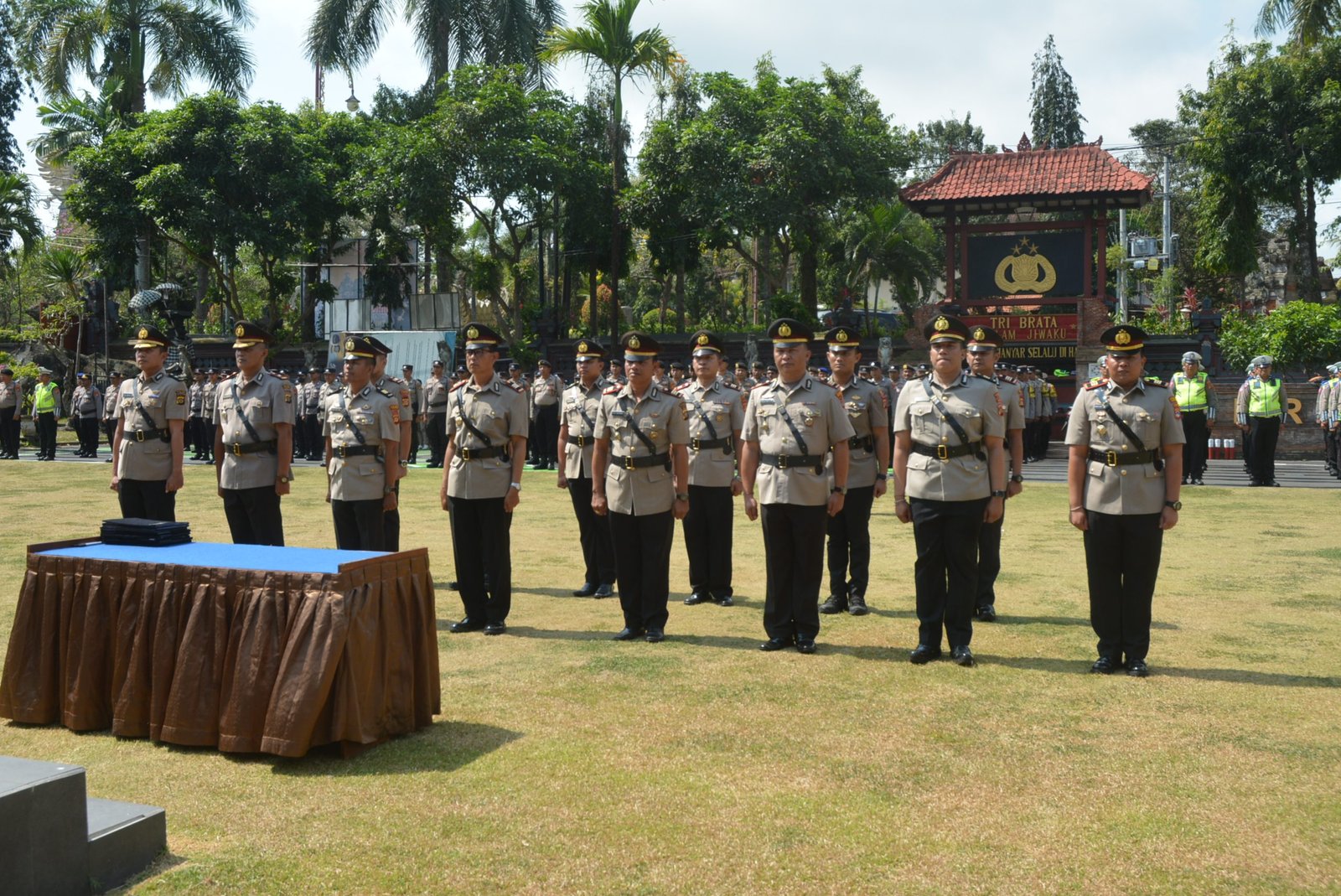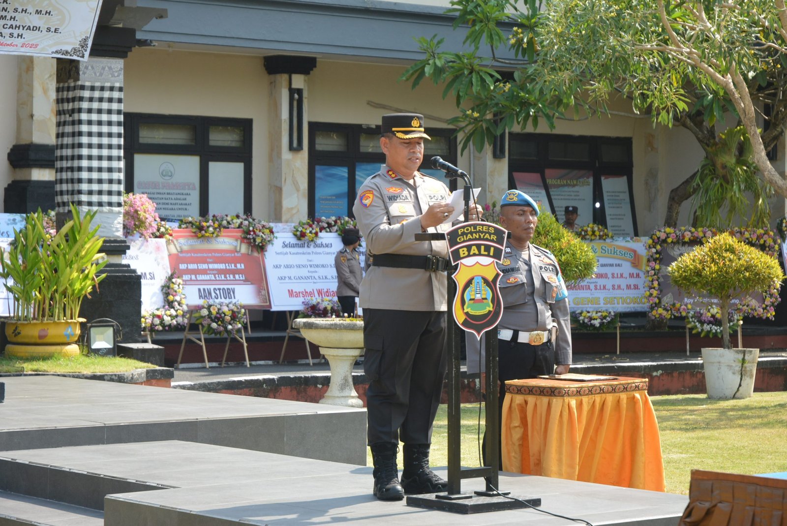 Kapolres Gianyar AKBP. Ketut Widiada memimpin upacara Serah Terima Jabatan (Sertijab) Pejabat Utama Polres Gianyar di lapangan Apel Endra Dharmalaksana, Polres Gianyar. Sabtu, (7/10/2023) pukul 14.30 Wita.