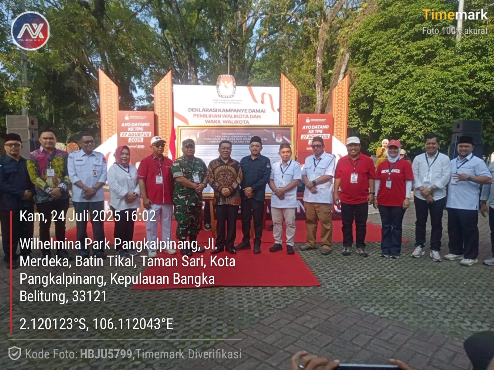 NASIONALXPOS.CO.ID, PANGKALPINANG – Penjabat (Pj) Wali Kota Pangkalpinang, M. Unu Ibnudin, menghadiri acara Deklarasi Kampanye Damai Pemilihan Wali Kota dan Wakil Wali Kota Pangkalpinang Tahun 2025 yang digelar oleh Komisi Pemilihan Umum (KPU) Kota Pangkalpinang, Kamis (24/7/2025), di Taman Wilhelmina, Pangkalpinang.