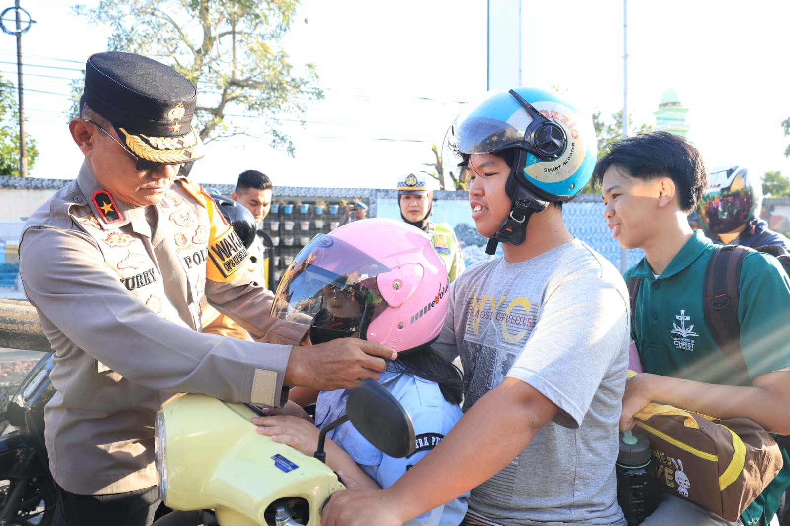 “Fokus kita bersamaan dengan berlangsungnya Operasi Keselamatan. Kebetulan Pak Wakapolda turut mengedukasi masyarakat, terutama pengendara motor, sekaligus mengganti helm yang sudah rusak dan mengingatkan agar helm selalu diklik,” ujar Pringadhi.