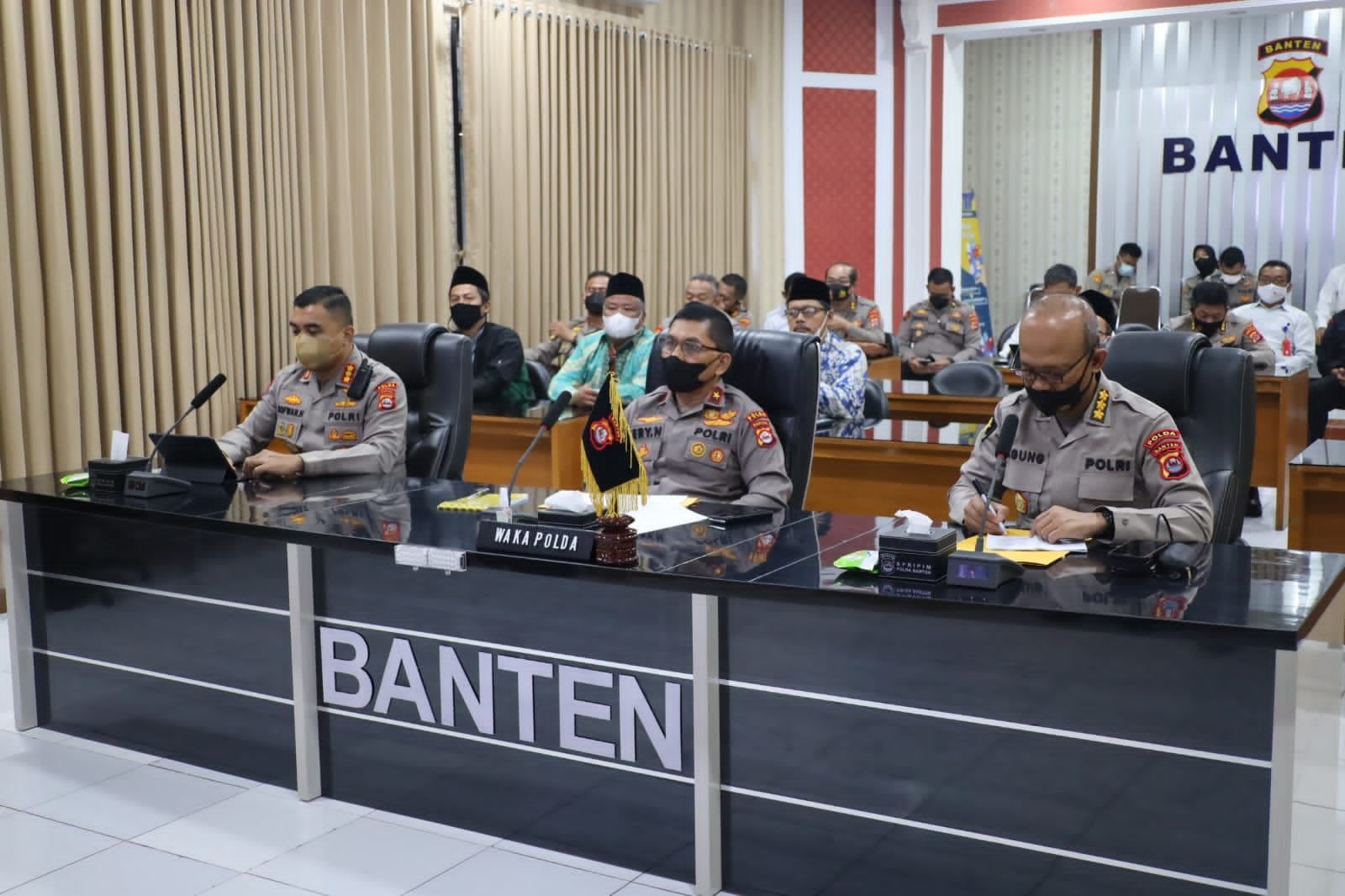 Kegiatan ini dihadiri Wakapolda Banten Brigjen Pol Ery Nursatari didampingi Ketua MUI Banten KH. TB. Hamdi Ma’ani dan Ketua Pengurus Wilayah Nahdlatul Ulama (PWNU) Banten KH Bunyamin Hafidz beserta Pejabat Utama Polda Banten dan Kapolres jajaran yang diikuti melalui zoom meeting.