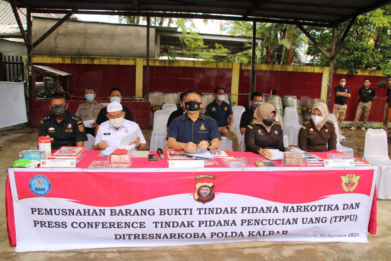 Hal ini dikatakan Direktur Reserse Narkoba Polda Kalbar Kombes Pol Yohanes Hernowo dalam acara Press Confrence tentang pemusnahan Barang Bukti tindak Pidana Narkoba, pada Kamis 5 Agustus 2021 di Halaman Direktorat reserse Narkoba Polda Kalbar.