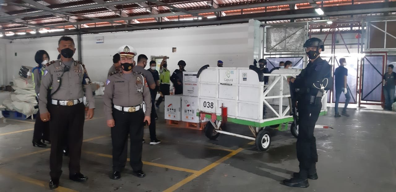 Vaksin yang dikirim dari Jakarta ini dikawal ketat oleh 2 personel Brimob dari Kelapa Dua Jakarta.