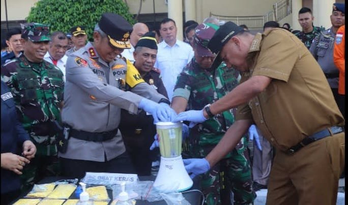 Pemusnahan barang bukti dilakukan secara simbolis oleh Gubernur Sulut Olly Dondokambey dan Kapolda Sulut Irjen Pol Setyo Budiyanto beserta Forkopimda lainnya yang hadir.
