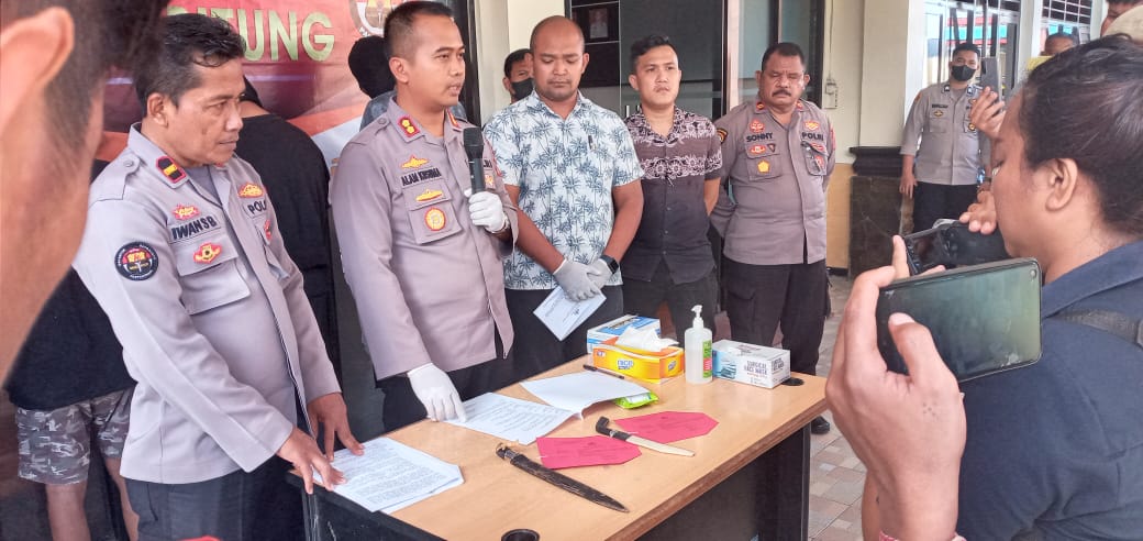 NASIONALXPOS.CO.ID, BITUNG – Kasus pembunuhan terjadi pada Selasa (30/8/2022) di Kelurahan Girian Weru Satu, Kecamatan Girian, Kota Bitung sekira pukul 03.00 wita. Respon cepat, anggota Satreskrim  Polres berhasil mengamankan para pelaku pada Rabu (31/8/2022) sekira pukul 13.00 wita di Lorong Union, Kecamatan Madidir, Kota Bitung.