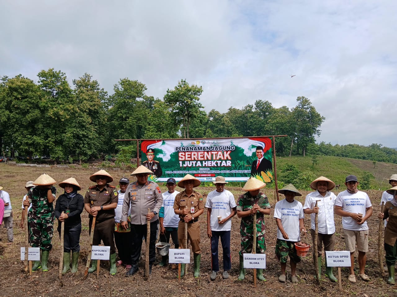 NASIONALXPOS.CO.ID, BLORA – Dalam upaya mendukung ketahanan pangan nasional yang dicanangkan oleh Polri dan Kementerian Pertanian, Polres Blora melaksanakan program penanaman jagung serentak di wilayah Kabupaten Blora. Acara ini bertujuan untuk mendukung program penanaman jagung seluas 1 juta hektar di seluruh Indonesia.