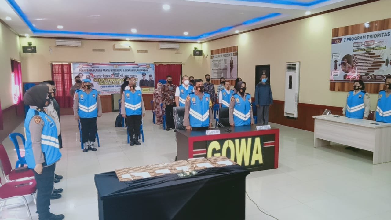 Polres Gowa Tandatangani Fakta Integritas dan Pengambilan Sumpah Seleksi Penerimaan Terpadu Bintara Tahun 2020