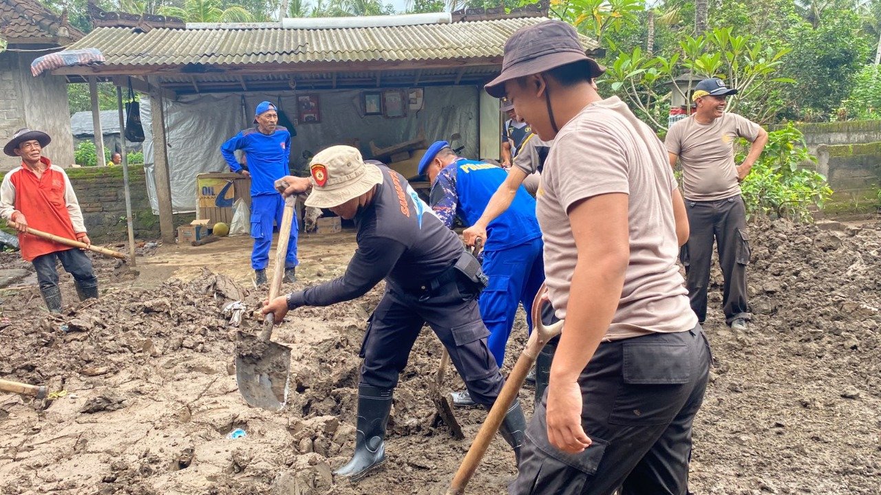 Kasat Samapta AKP. I Putu Suparta, mengatakan kegiatan kerja bakti membantu masyarakat yang terdampak bencana alam ini kami laksanakan setiap hari supaya dapat meringankan beban masyarakat yang menjadi korban bencana banjir.