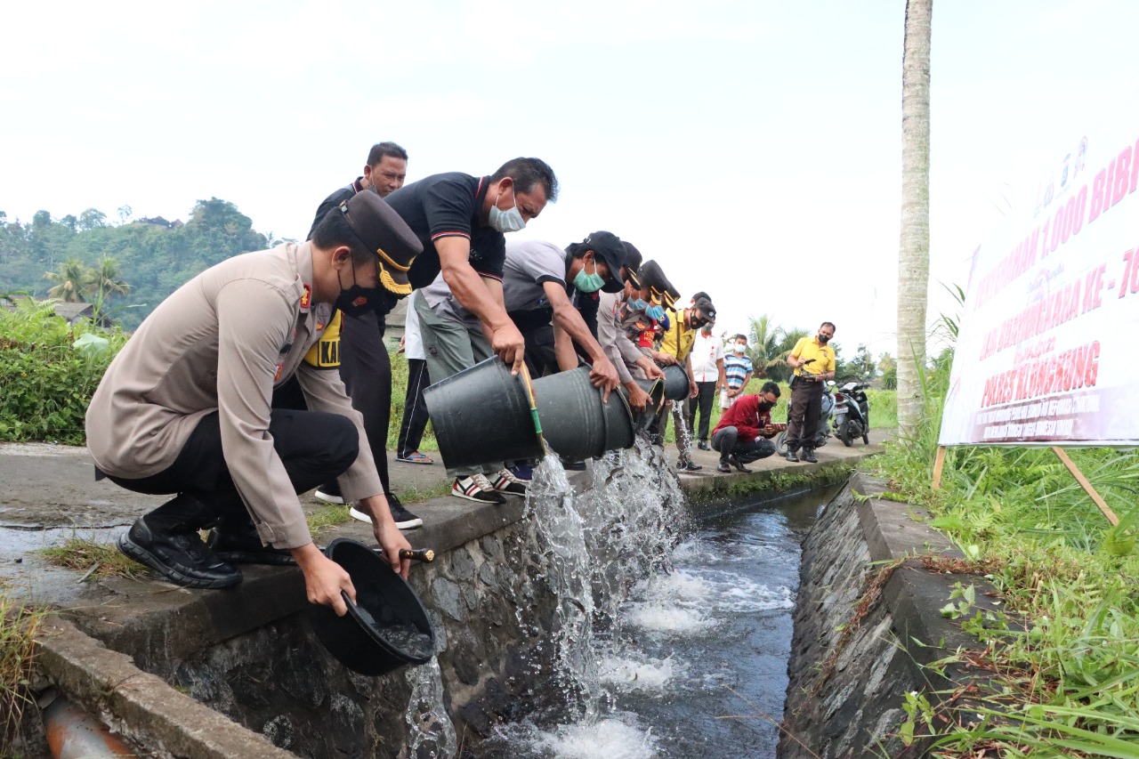 Polres Klungkung Tebar Bibit Ikan Lele di Desa Selisihan
