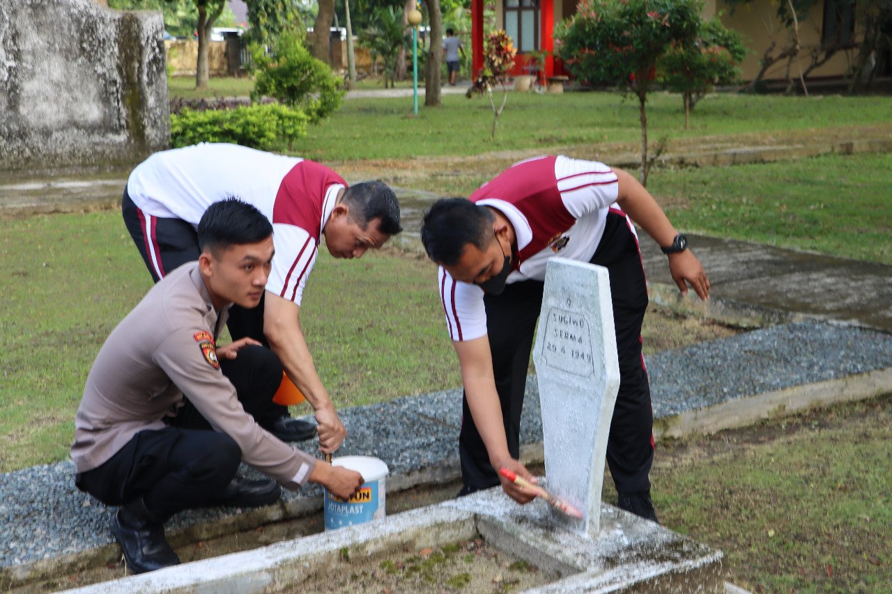 Polres Lamsel Pengecatan di Makam Pahlawan Kesuma Bangsa