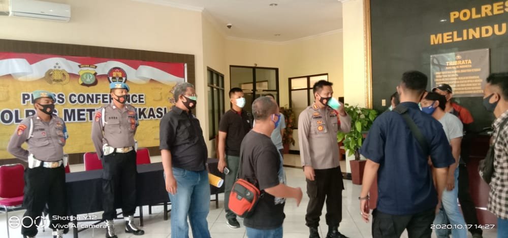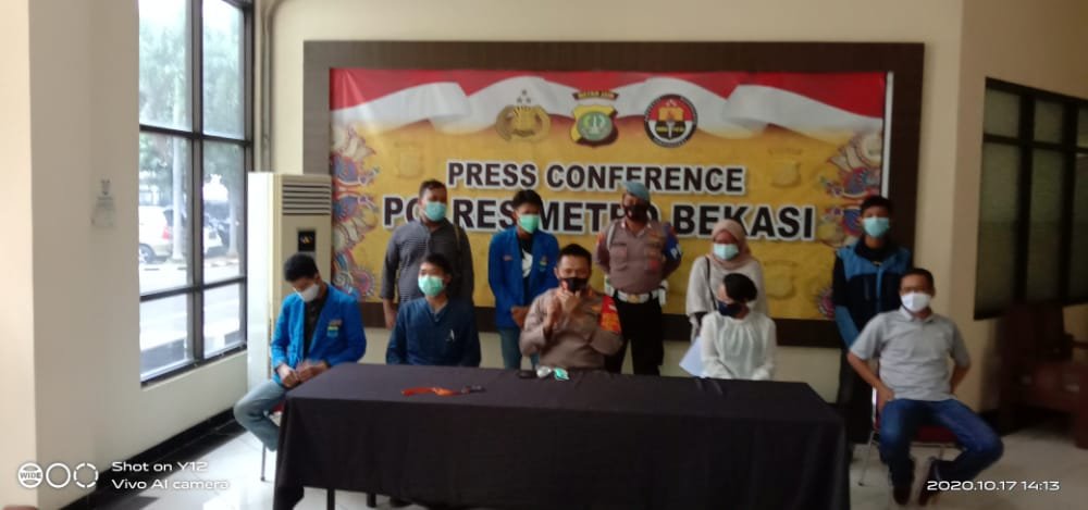 kami akan memberikan jalan bagi mahasiswa untuk menyampaikan aspirasinya ke siapapun misalnya : apabila ingin ke bupati akan kami fasilitasi , apabila ingin ke DPR , DPRD akan kami fasilitasi an ke manapun tentunya dengan cara yang sesuai dengan peraturan dan perundang-undangan yang berlaku seperti undang-undang nomor 9 tahun 1998 , dengan mengedepankan aspek keselamatan keamanan dan menjaga hak-hak orang lain dalam menyampaikan pendapat di muka umum ,” ucap Kapolres Kombes pol hendra Gunawan saat press Conferrence di lobby Polres Metro Bekasi .