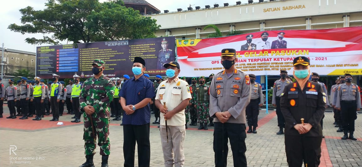 “Hal itu sebagai pembelajaran sehingga perlu kesiapan dari petugas untuk bahu membahu serta bersinergi dengan instansi terkait serta peran masyarakat untuk menekan perkembangan Covid 19”, Kutipan, Eka Supriatmaja dalam sambutannya saat ambil apel persiapan operasi ketupat 2021 di lapangan gedung prometer Polres metro bekasi.