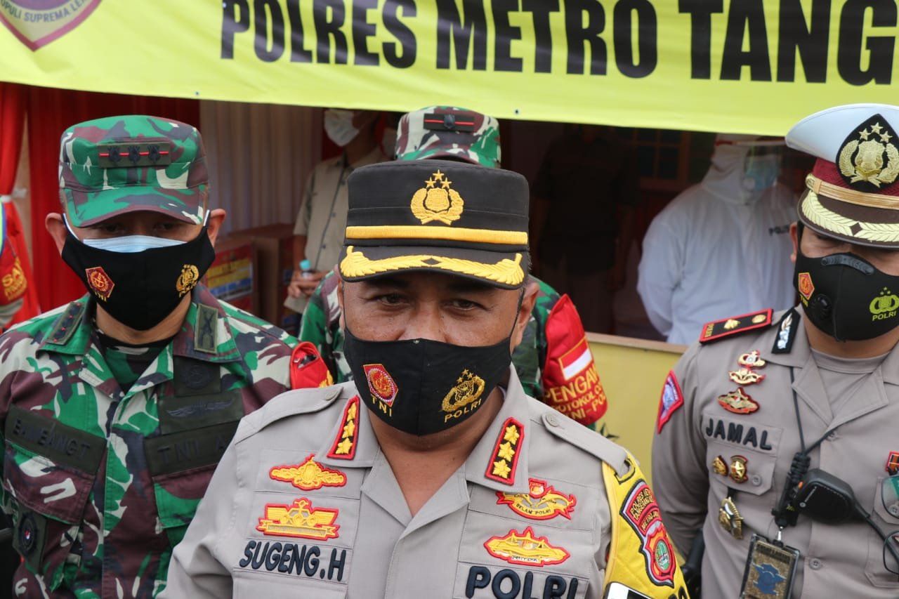 NASIONALXPOS.CO.ID, TANGERANG – Untuk menekan angka penyebaran virus corona di Kota Tangerang, Polres Metro Tangerang Kota bersama Kodim 0506 melakukan rapid tes antigen di rest area Pinang.