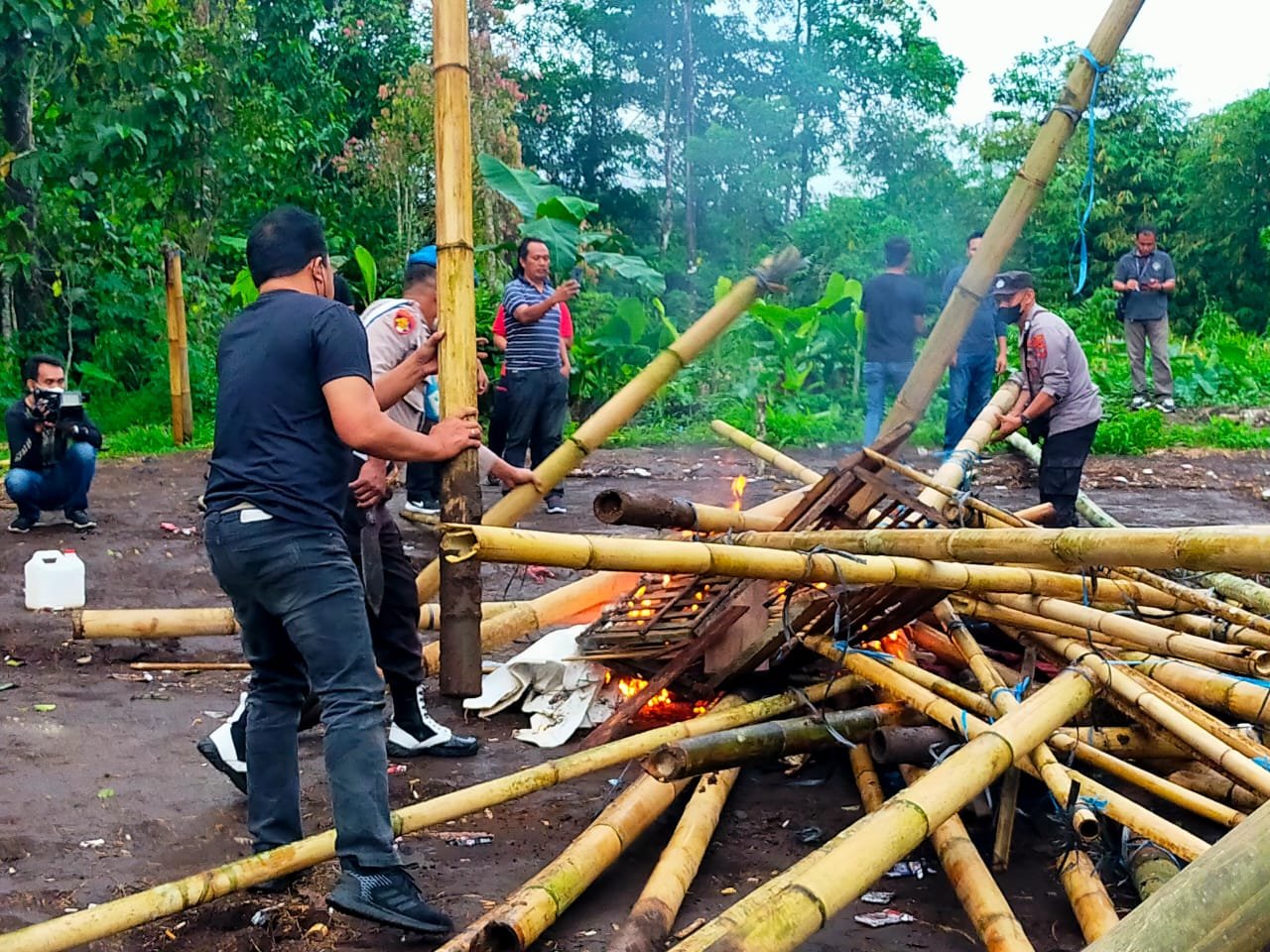 Setalh dilakukan pengumpulan bahan keterangan di lokasi perjudian sabung ayam tersebut, tim gabungan segera memusnahkan beberapa barang yang diduga dijadikan sarana perjudian sabung ayam, dengan cara dibakar di lokasi tersebut.