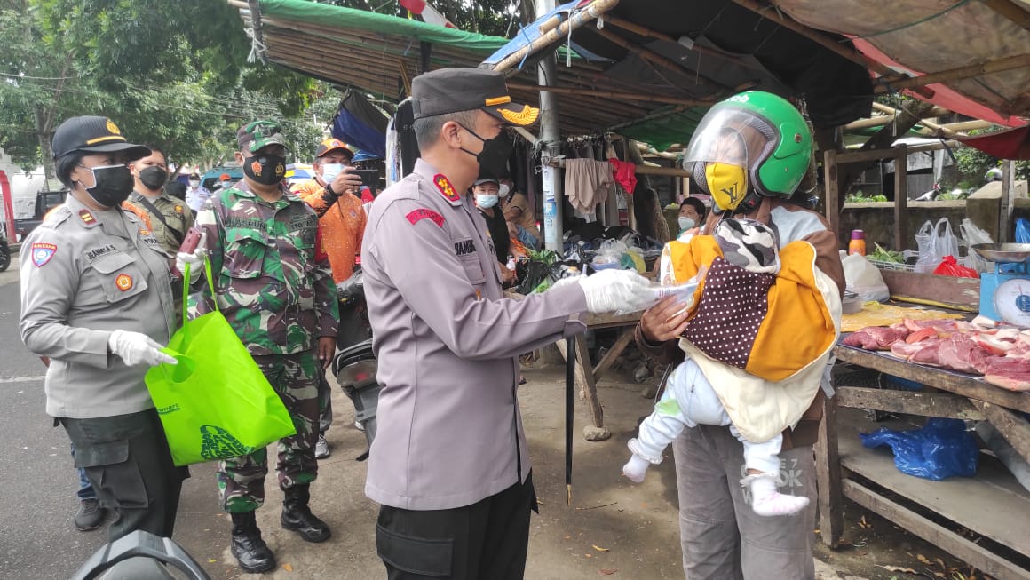 Seperti yang dilakukan oleh Polres Minahasa Utara (Minut), yakni dengan membagikan masker gratis sekaligus sosialisasi imbauan protokol kesehatan kepada masyarakat, di Pasar Airmadidi, Selasa (24/8) pagi.
