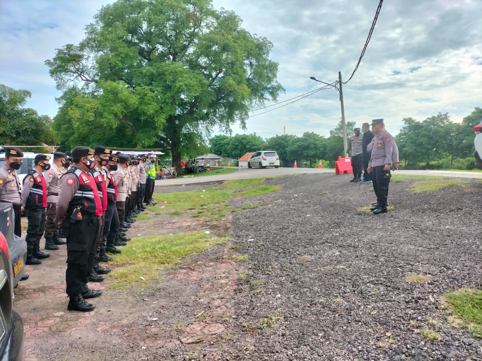 Kabagops Polres Serang AKP Joko Pituturno memberikan arahan kepada personel yang melasanakan pengamanan agar melaksanakan tugas dengan penuh tanggung jawab dan tetap menerapkan protokol kesehatan Covid-19.