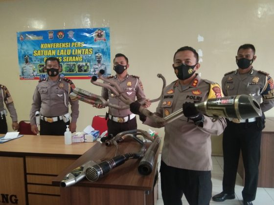 Kapolres Serang, AKBP Mariyono mengatakan, dalam dua pekan semenjak (22/3/2021) hingga saat ini Jajaran Polres Serang (Satsabhara, Polsek Jajaran, dan Satlantas Polres Serang) berhasil menyita sebanyak 334 knalpot yang tidak standar.
