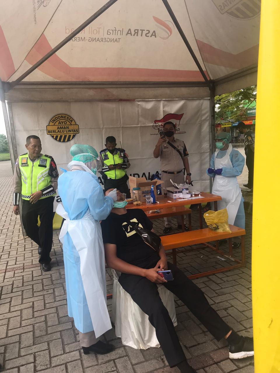 NASIONALXPOS.CO.ID. KOTA SERANG – Petugas pengamanan Operasi Lilin Kalimaya 2020 Polres Serang Kota Polda Banten dan masyarakat menjalani rapid test Covid-19 bertempat di Res Area KM 68 A jalan Tol Tangerang- Merak. Rabu (23/12/2020).