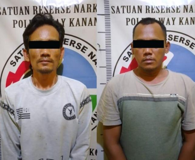 Hasilnya diamankan 2 (dua) orang laki-laki yang mengaku berinisial AL dan HW di pinggir Jalan Perkebunan Sawit Kampung Nuar Maju Kecamatan Buay Bahuga Kabupaten Way Kanan.