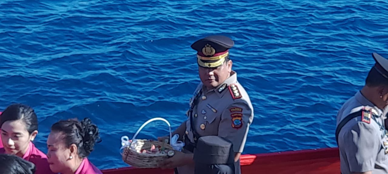 Upacara Tabur Bunga di pimpin langsung oleh Kapolresta Manado Kombes Pol Julianto P. Sirait, S.H.,S.I.K yang di laksanakan di Dermaga Pelabuhan Manado menggunakan Kapal Gada Nusantara, Selasa (27/6/2023).