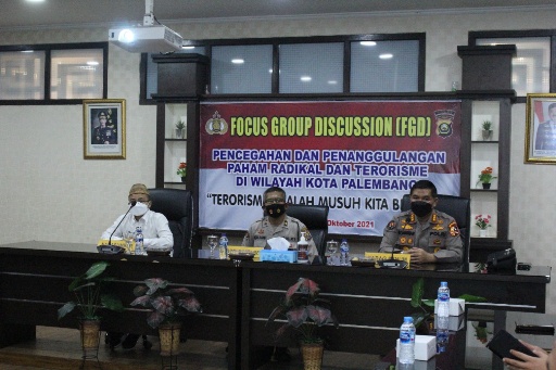 NASIONALXPOS.CO.ID, PALEMBANG – Kepolisian Resor Kota Besar (Polrestabes) Palembang, menggelar Focus Group Discusion (FGD), dengan mengangkat tema “Pencegahan dan penanggulangan paham radikalisme dan terorisme di wilayah Kota Palembang”, di Aula Cendawasih Polrestabes Palembang, Kamis (7/10/2021).