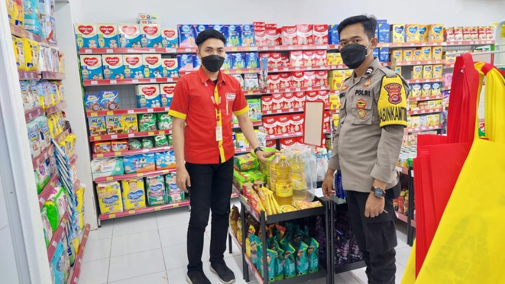 Pada kesempatan tersebut *Briptu Wahyu R* melakukan monitoring di Alfamart Desa Warakas. Ia mengecek Ketersediaan minyak goreng di toko waralaba saat ini terjadi kenaikan harga.