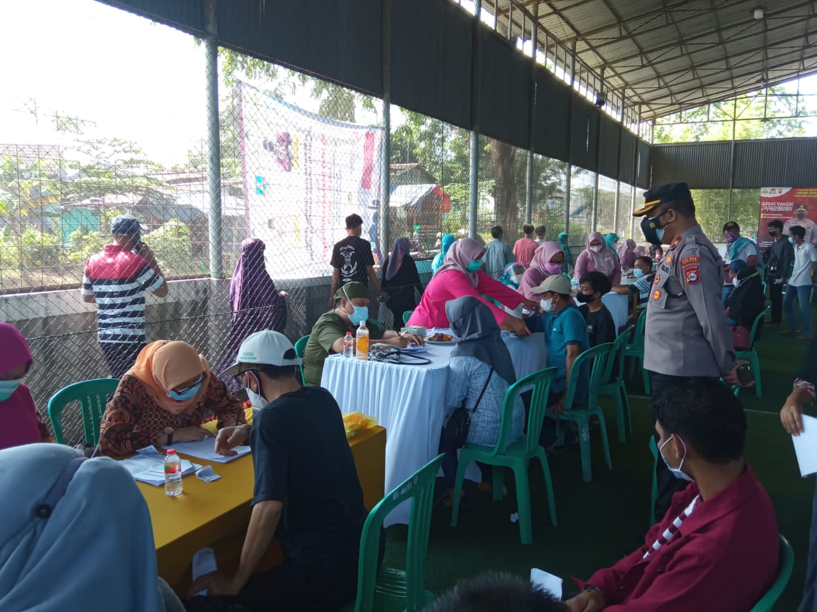 Diketahui, bahwa kegiatan Vaksinasi Covid-19 yang digelar oleh Dinkes Kabupaten Serang teersebut dengan sasaran -/+ 2000 orang, sehingga Polsek Cikande melakukan pengamanan, guna untuk mencegah antrian yang menimbulkan kerumunan.
