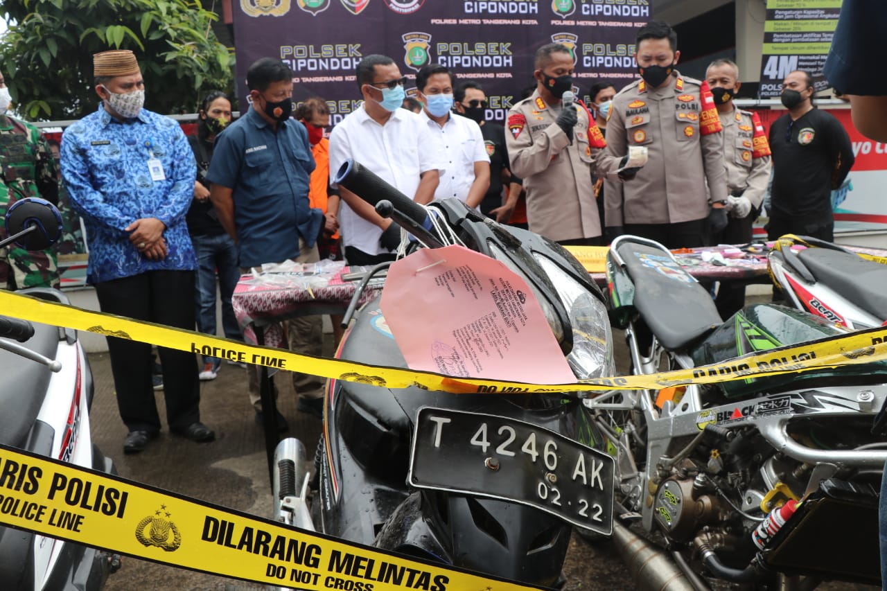 “Pengungkapan berawal dari informasi masyarakat bahwa sering terjadi transaksi penjualan kendaraan sepeda motor yang tidak di lengkapi dengan surat-surat di rest area km.14 tol Tangerang – Jakarta,” Kata Kapolres Metro Tangerang Kota Kombes Pol Deonijiu De Fatima saat jumpa pers di Mapolsek Cipondoh, Senin,(18/1/2021).
