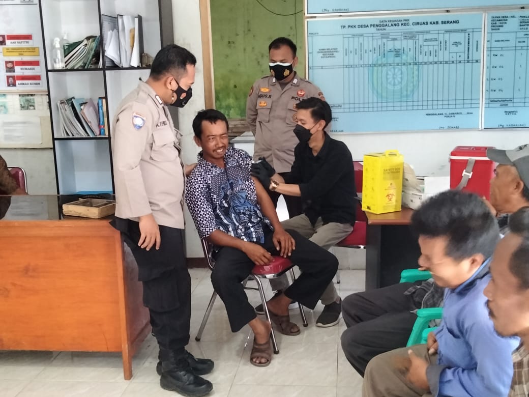Polsek Ciruas Polres Serang Melaksanakan PAM Vaksinasi Covid -19 di Desa Penggalang